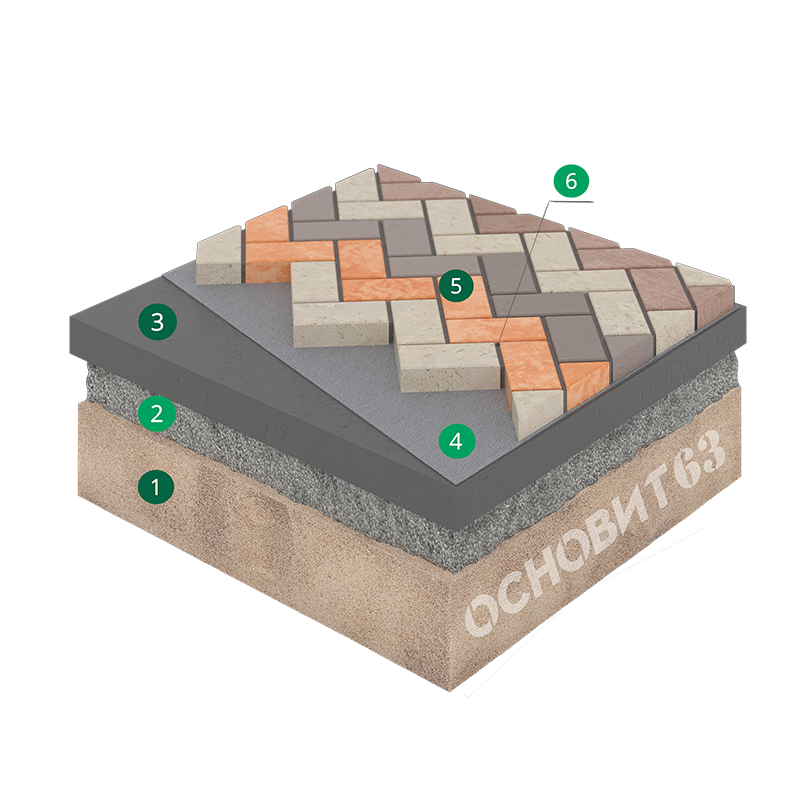 Смеси Основит™ обеспечивают прочное сцепление брусчатки с основанием и между собой до 1 МПа, благодаря чему она не разъедется и не испортит вид вашего участка.