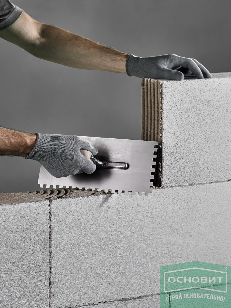 Клей монтажный Основит Селформ МС112 предназначен для кладки стен и перегородок из блоков и плит на основе ячеистого бетона (пено- и газобетон), газосиликата и силиката.
