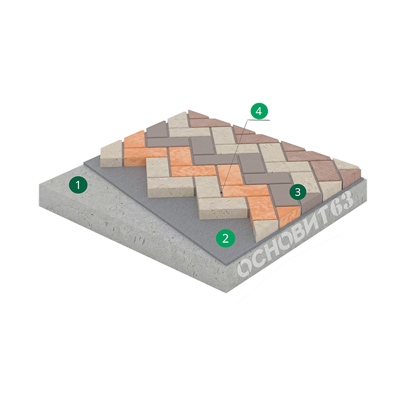 Смеси Основит™ обеспечивают прочное сцепление брусчатки с основанием и между собой до 1 МПа, благодаря чему она не разъедется и не испортит вид вашего участка.